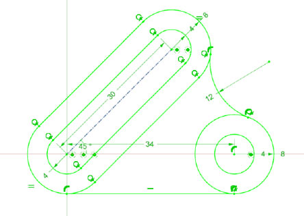 ? 提供多樣的全尺寸約束功能:同心約束、水平約束、豎直約束、平行約束、垂直約束、相切約束、相等約束、對稱約束、點(diǎn)在線上約束、固定約束、距離約束、X/Y 方向約束、半徑約束